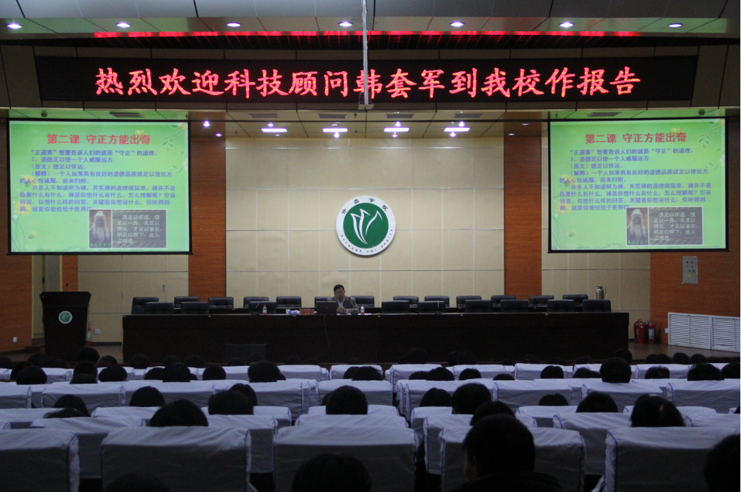韩老师将国学与自觉践行社会主义核心价值观巧妙结合,与同学们的做人、做事相结合,与培养综合素质相结合,精彩讲座赢得了同学们阵阵掌声,为同学们自觉践行社会主义核心价值观营造了良好的氛围。