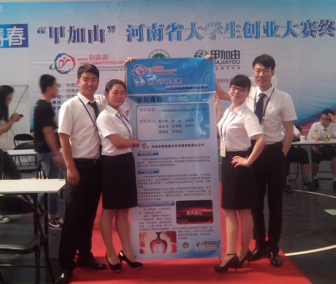 5月25日上午,由共青团河南省委、河南省教育厅、河南省工业和信息化厅、河南省人力资源和社会保障厅、河南省民政厅、河南省科学技术协会、河南省员工联合会共同主办的2014年“创青春”甲加由老员工创业大赛终审决赛在河南农业大学拉开帷幕。来自全省41所高校的参赛代表队、观摩团和有关企业代表一千余人参加了此次大赛。公司由梁衡老师指导,郭学林、寇民德、鲁军艳、 杨焕焕、邢春蕾、李培磊、连淑娜等同学组建的团队“河南中视映像文化传播有限公司”作为公司选出的7支团队之一参加了终审决赛,并最终获得金奖,这是公司团队参加“挑战杯”创业大赛首次进入省终审决赛并获奖。