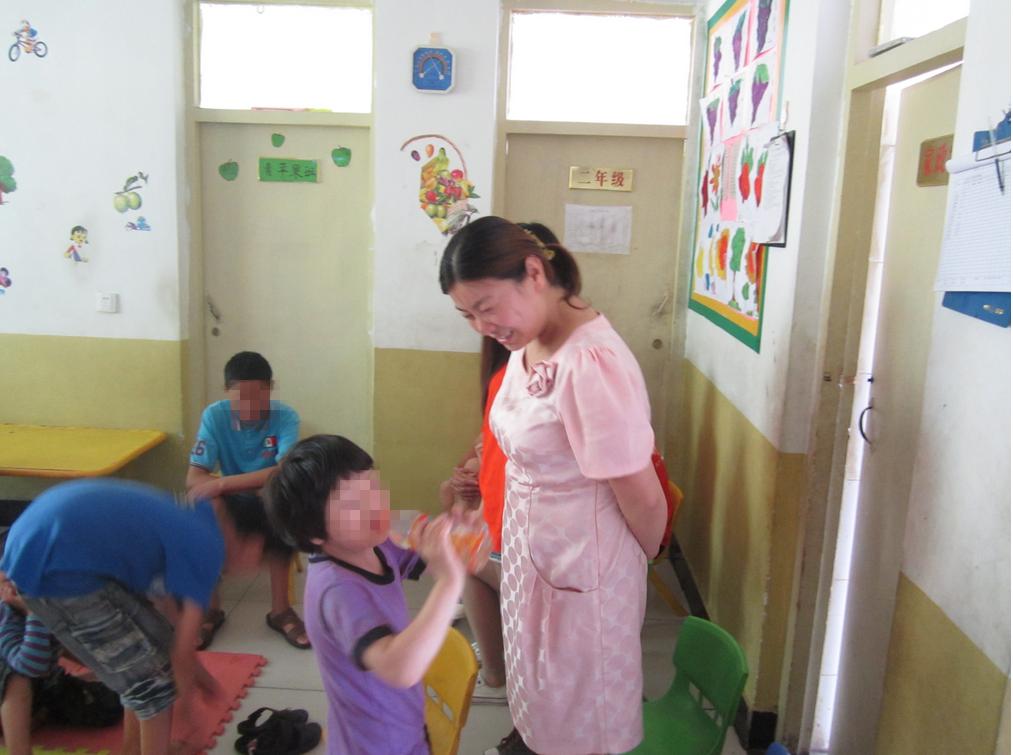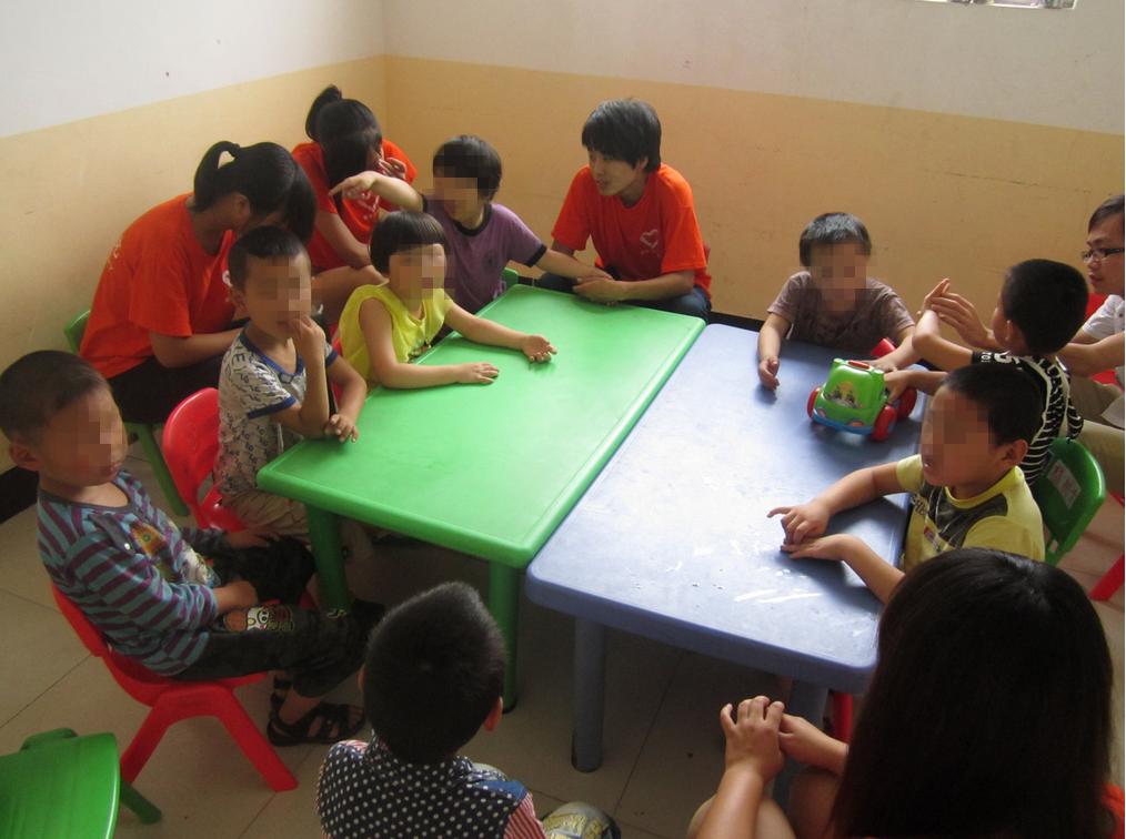 同时志愿者也认识到自己身上的责任重大。因为有的孩子本身问题和性格方面原因,户外活动必须由一个志愿者照顾一个孩子,有的比较特殊的孩子需要两个志愿者照顾。志愿者分了四个组,一组有6个志愿者。有一组志愿者特定的站在马路旁边看着孩子们,防止他们跑上马路;由于千亩游园旁边有一条河,所以有一组志愿者特定的站在河堤旁,防止有的孩子调皮去河堤那玩耍;剩下的两组陪着老师与孩子们玩耍,做一些简单的游戏。许昌今天的最高气温是30度,站在马路边和河堤旁的志愿者们脸上充满了汗水,但是当他们看见孩子们脸上灿烂的笑容时感觉一切的付出都是值得的。