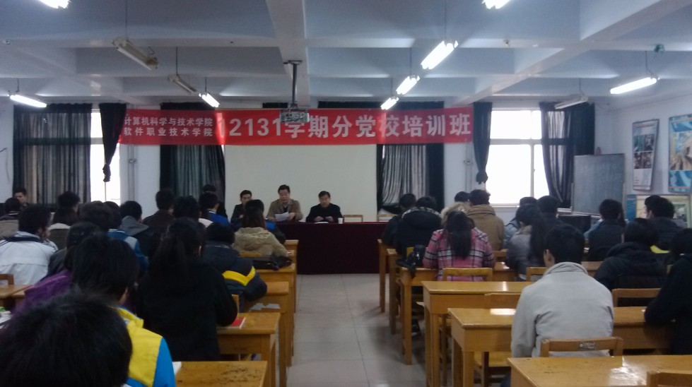 2012年11月30日下午,计算机科学与技术公司(软件职业技术公司)12131学期分党校培训班开班典礼在计算机实验楼311报告厅隆重举行。院特聘党建组织员侯国彦、公司党总支书记(分党校董事长)郭超峰、经理张志立、公司党总支副书记(分党校副董事长)翟广辉、院团总支书记(分党校秘书长)梁衡以及受训的全部81名学员参加了开班典礼。开班典礼由分党校秘书长梁衡主持。