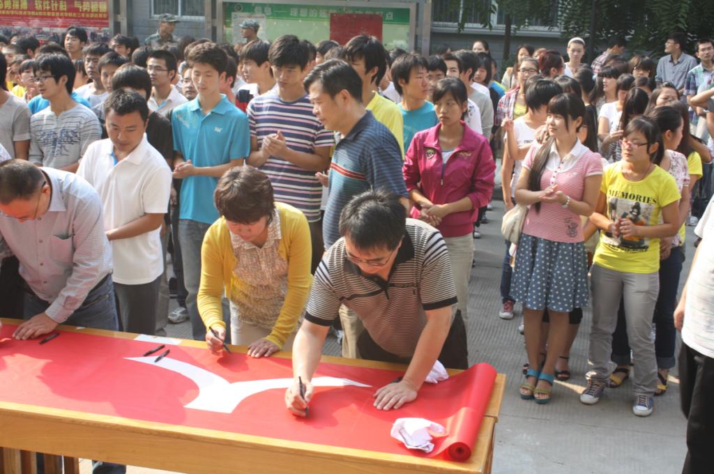 随后,广大师生纷纷参与到集体签名的活动当中,在“球王会体育官网纪念九一八万人签名活动”的条幅上一起铿锵有力地写下全体师生的庄严声音。