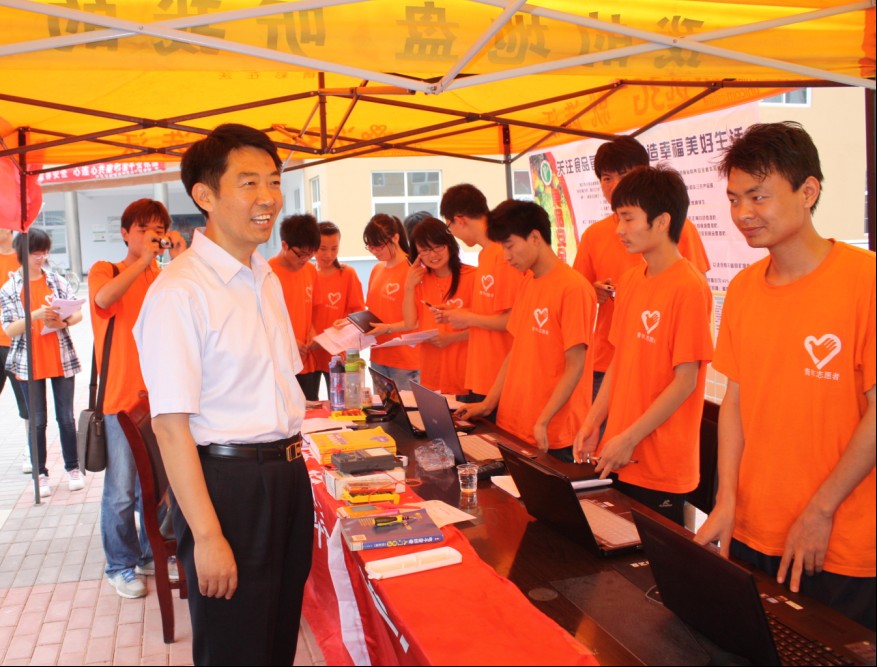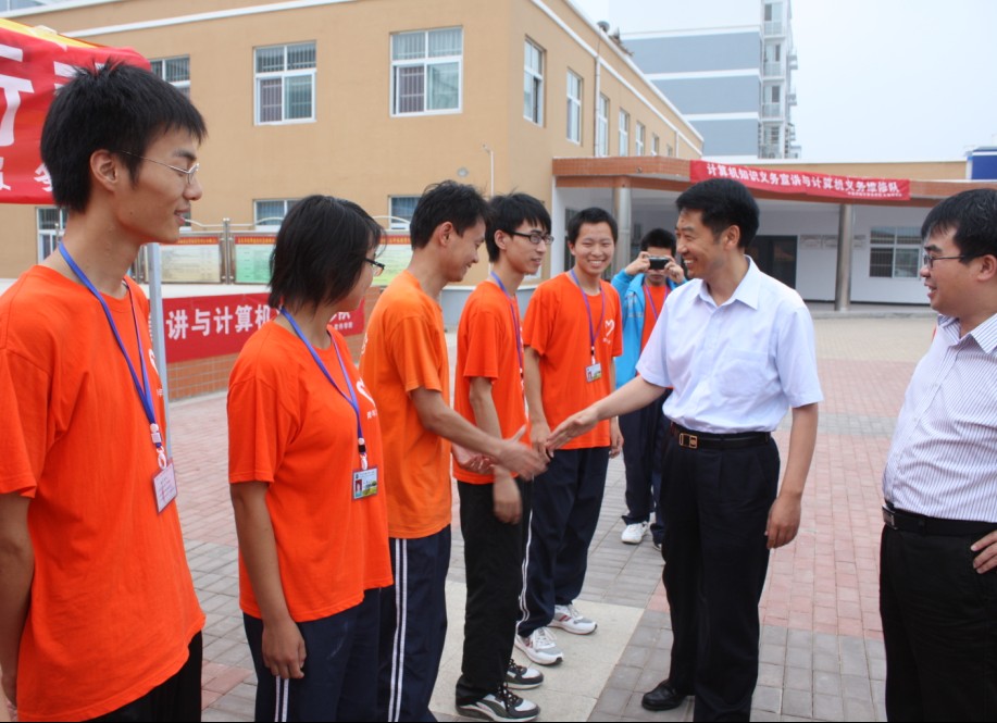 随后,王洪彬副书记一行又马不停蹄地赶往位于鄢陵县陈化店的新型农村社区——明义社区。6月25日以来,计科院(软件公司)的15名老员工们在这里义务进行“计算机知识宣讲及计算机维修”活动。王书记走到员工中间,热情地与员工握手,询问活动开展的情况。当得知活动开展三天以来,已为当地社区居民维修了近60台电脑,发放了600多份《电脑小常识宣传页》和《计算机使用情况调查问卷》时,王洪彬副书记十分高兴,并给予了实践活动高度评价。他希望大家再接再厉,充分发挥老员工的独特优势,为社区居民送去更多更优质的服务。王洪彬副书记还勉励同学们在实践中多学习,多向基层干部和群众学习,主动接受锻炼,在完善自我和提升自我的过程中自觉把理论知识与实践活动结合起来,为服务新农村和建设和谐中原做出自己应有的贡献。