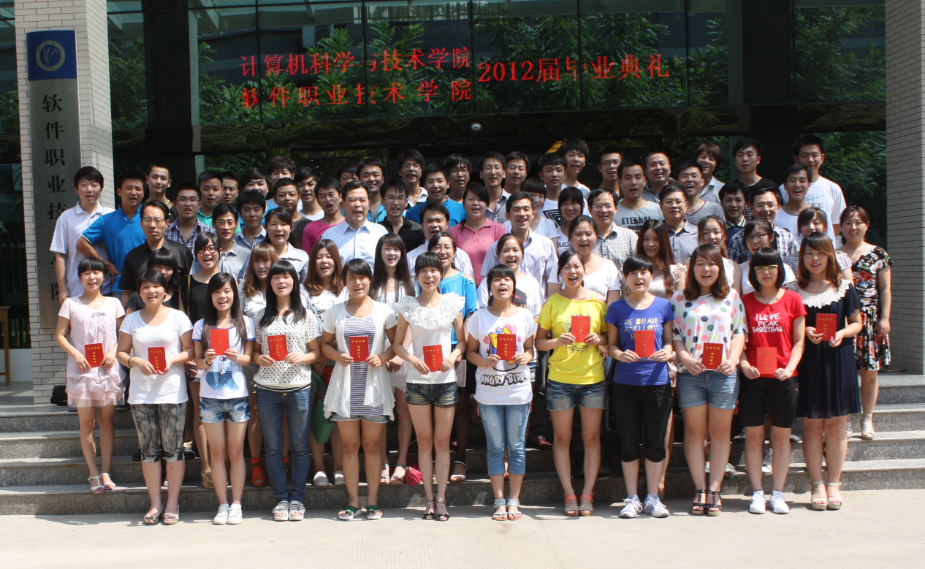 6月15日上午9:30,计算机科学与技术公司(软件职业技术公司)2012届毕业典礼暨学位授予仪式在计科楼一楼大厅隆重举行。计算机科学与技术公司(软件职业技术公司)党总支书记郭超峰、经理张志立、党总支副书记翟广辉、副经理冯战申、各教研室主任、全体辅导员,及2012届毕业班员工参加了此次毕业典礼。毕业典礼仪式由办公室主任王晓霞主持。